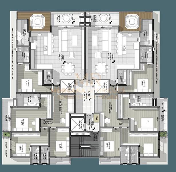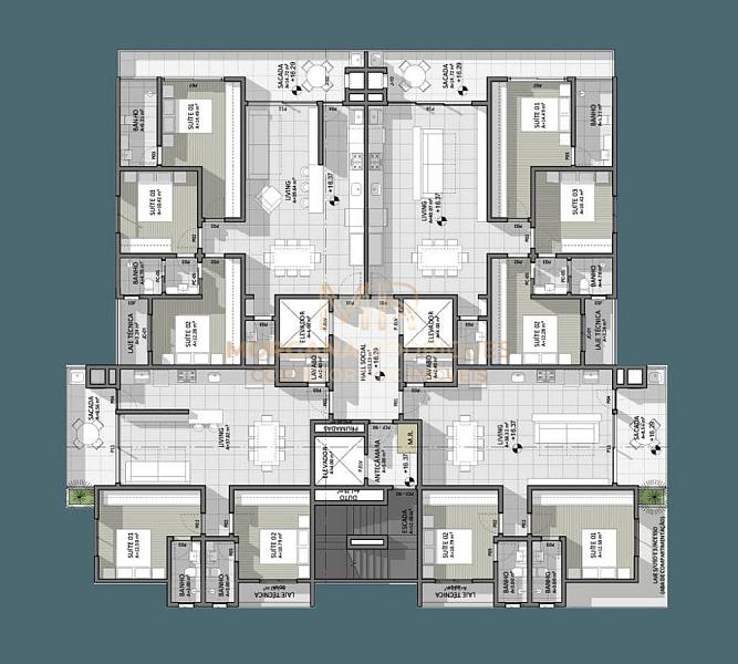 - Final 03 e 04: 02 suítes (área privativa de 93,92m²) - Vaga simples