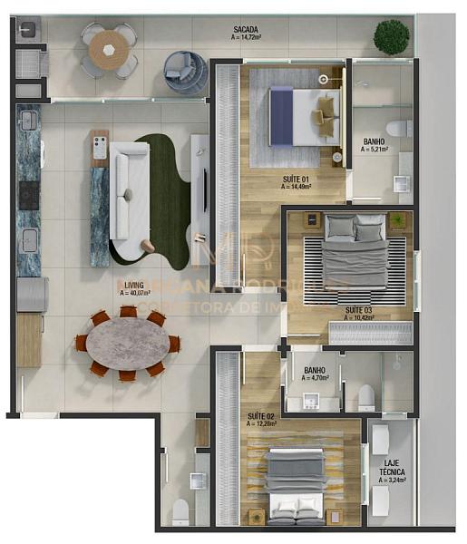- (área privativa de 121,22m²) - Vaga dupla